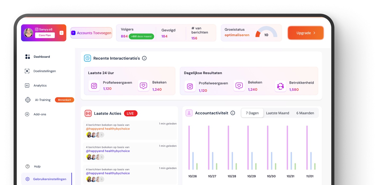 Onze AI-algoritmes in combinatie met ons team van IG-experts en inzichtelijke data tools, vinden nieuwe volgers die van uw content houden, in plaats van bots en willekeurige gebruikers die niet betrokken raken.